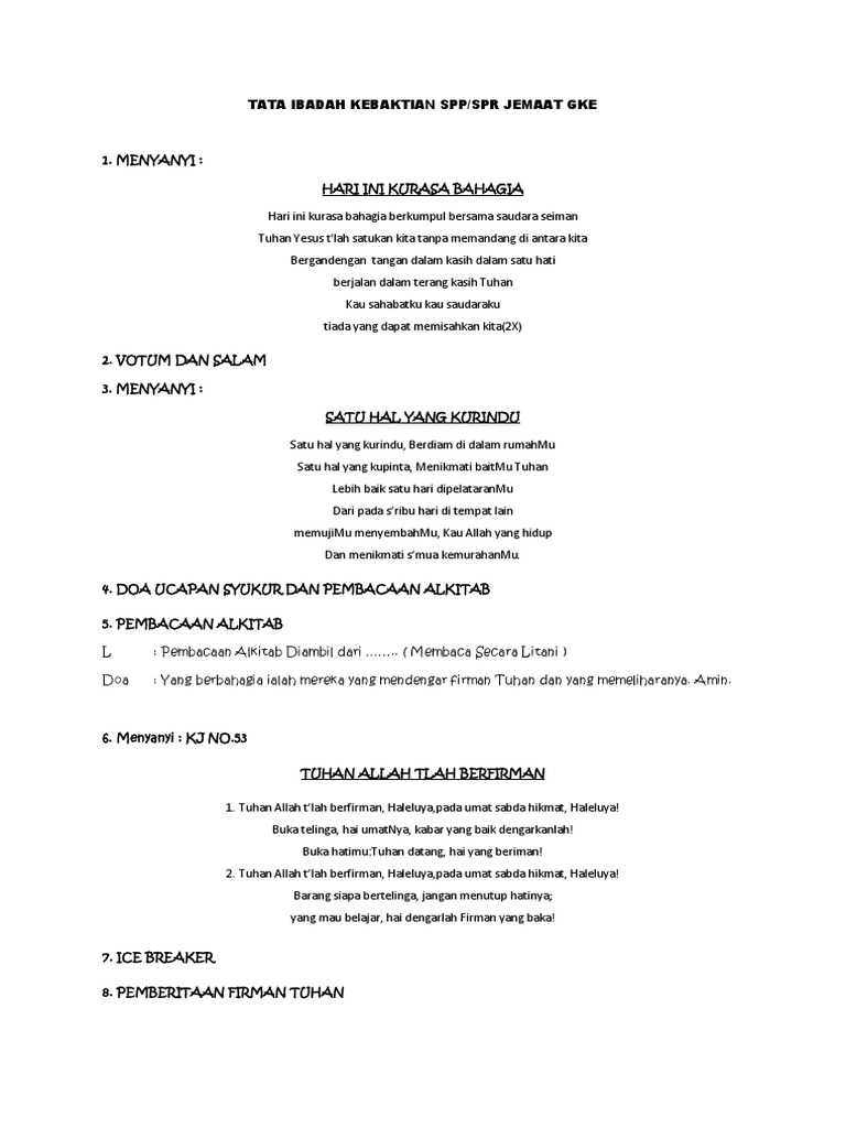 Votum & salam ibadah kristen : Sidang jemaat, allah begitu mengasihi kita, sehingga allah datang sebagai manusia di dalam pribadi yesus kristus. Dalam melakukan kegiatan beribadah kita mengenal adanya tata cara atau tata ibadah atau liturgi. Namun, kini berangsur menjadi kenyataan setelah para pemimpin umat kristen, yahudi, dan muslim meletakkan batu fondasi pembangunannya pada. Apakah ibadah kristen itu ?
